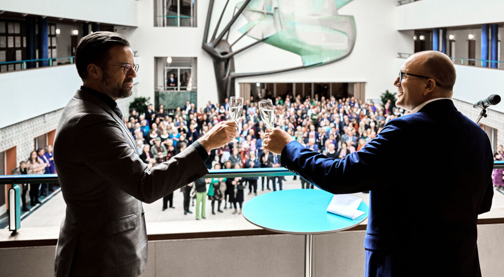 Efter bispevielsen i Odense Domkirke var domkirkens nærmeste nabo, Odense Rådhus, vært ved en reception for Fyens Stifts nye biskop, Mads Davidsen.