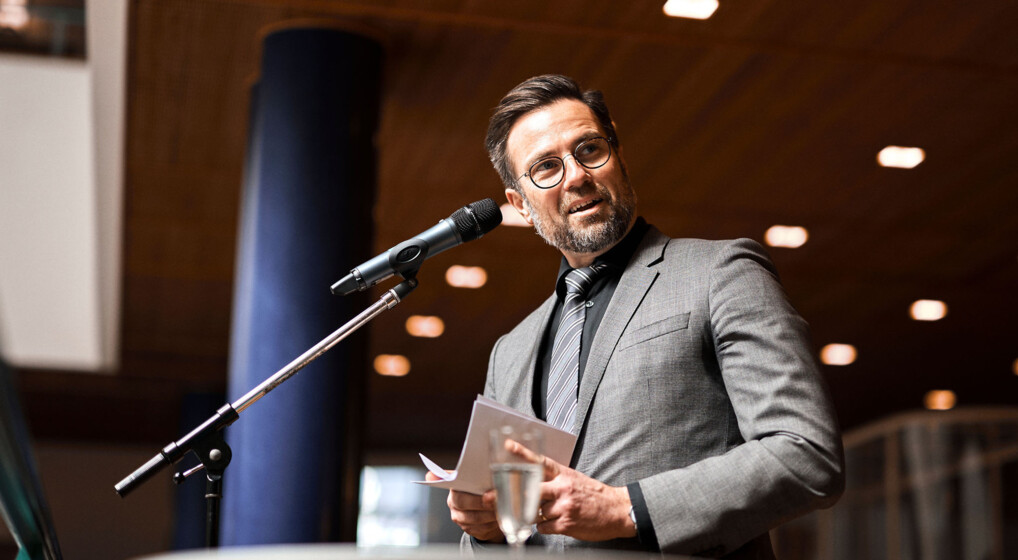 Borgmester Peter Rahbæk Juhl bød den nye biskop over Fyens Stift, Mads Davidsen, velkommen i rådhussalen til reception efter bispevielsen.