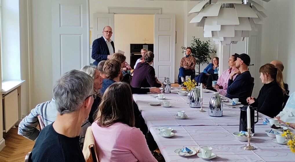 Også her var spørgelysten stor og tiden fløj hurtigt indtil det var tid til at gå fra Stiftets lokaler til bispeboligen, hvor biskop Mads Davidsen ventede sammen med et kaffebord.