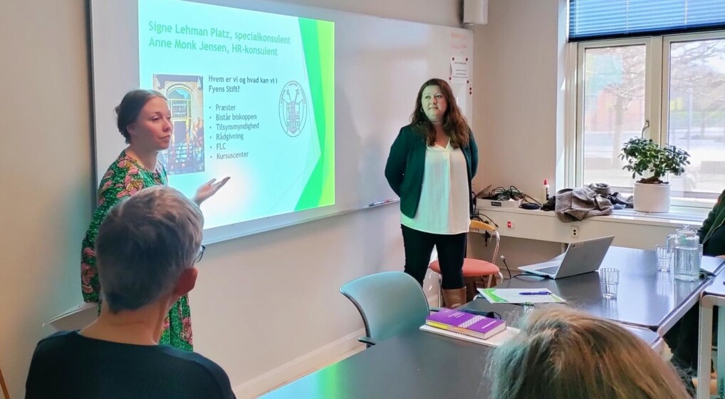 Anne Monk Jensen og Signe Lehmann Platz fortalte deltagerne fra Pastoralseminariet om Fyens Stift, og hvordan nye præster bliver modtaget.