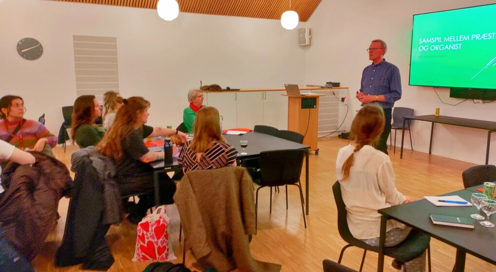 Leon Torp Nielsen fortalte de teologistuderende om samarbejdet mellem organist og præst