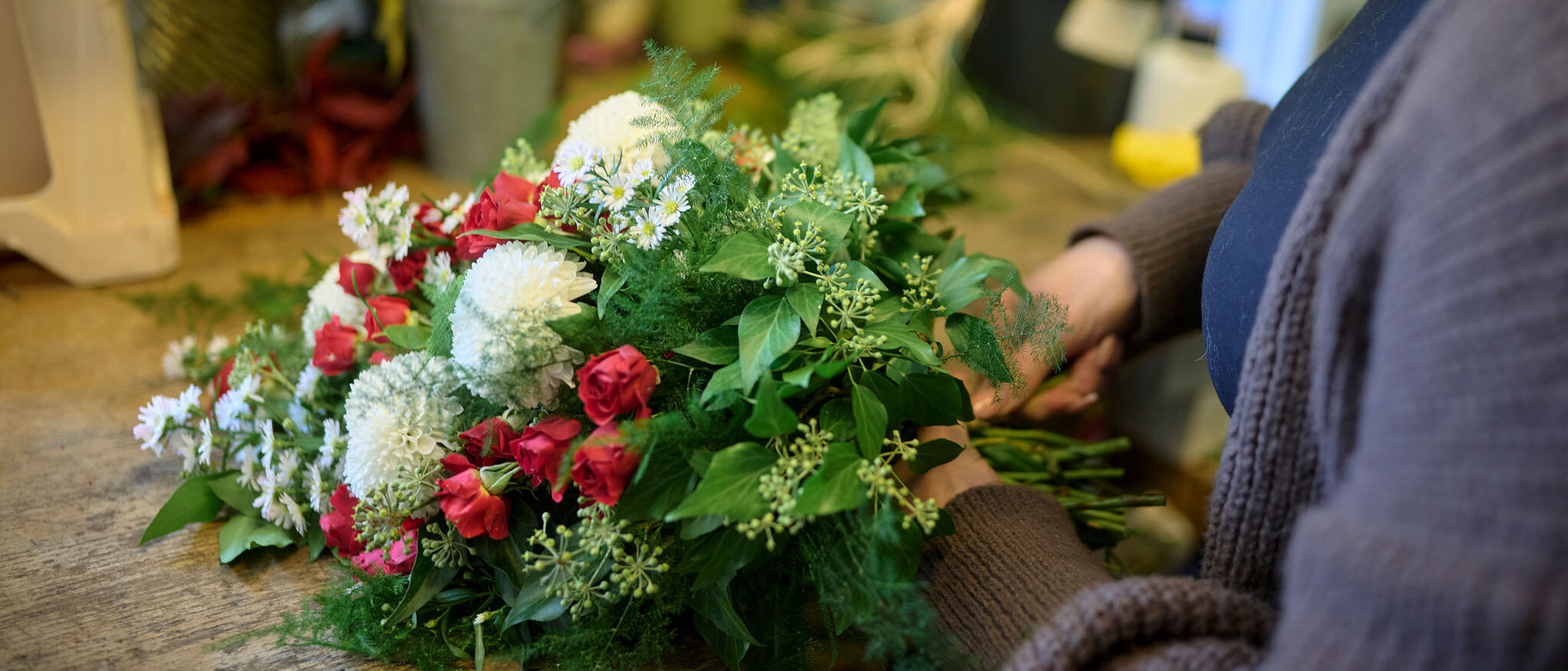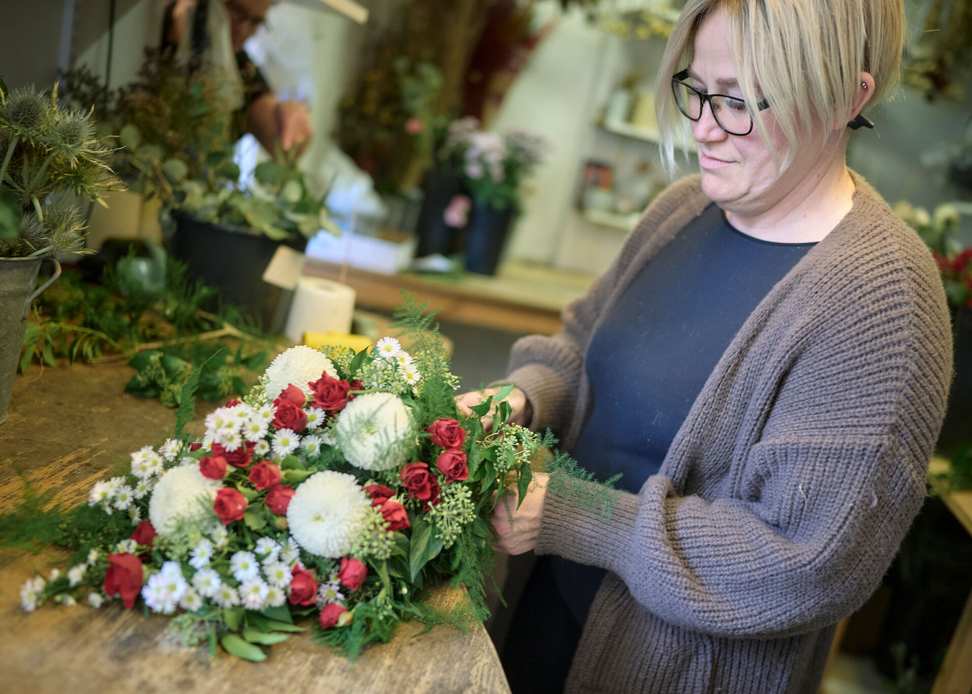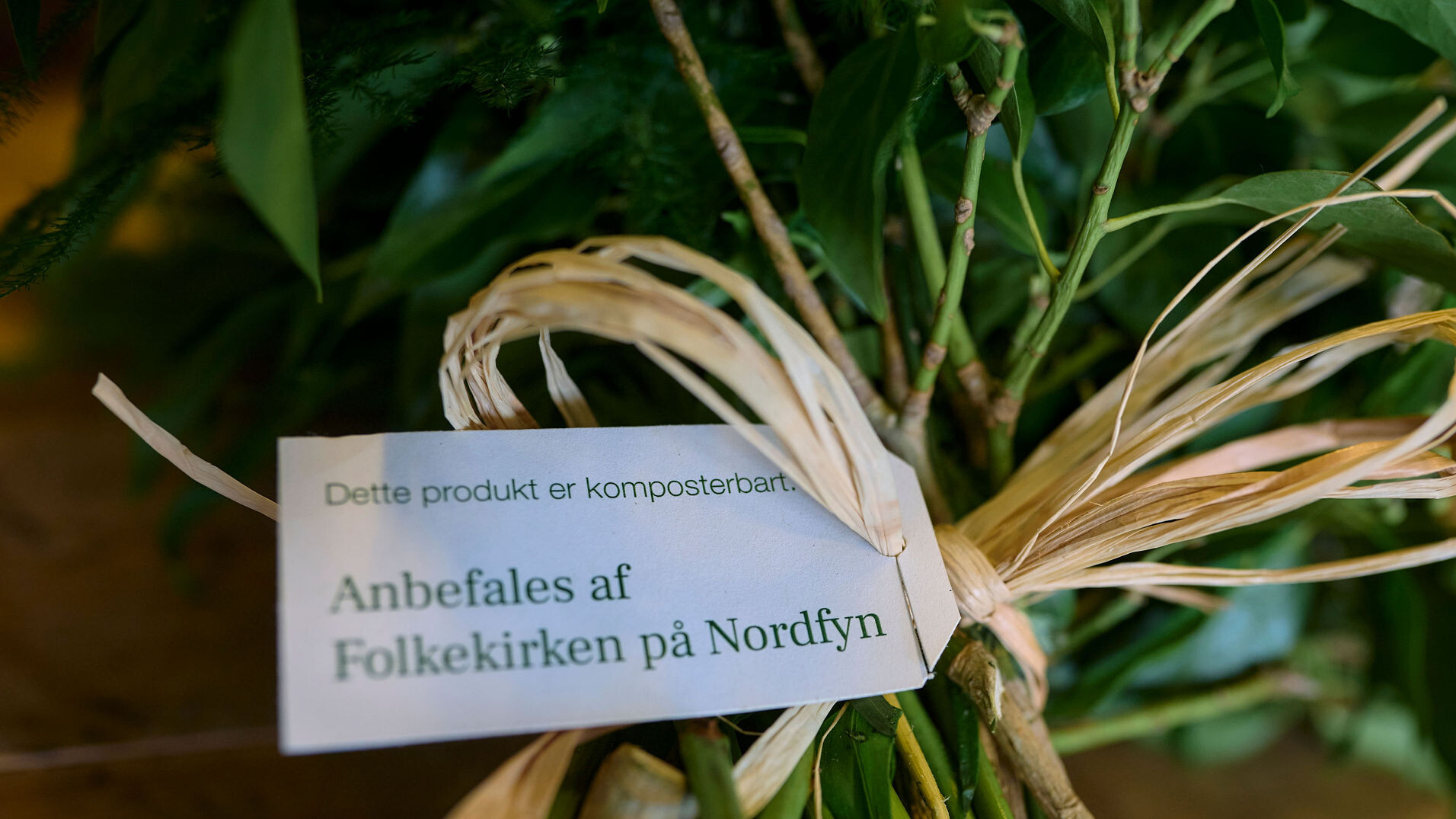 Når Pernille Jensen binder en bårebuket i sin butik i Bogense, hæfter hun et lille mærke på. ”Dette produkt er komposterbart,” står der. Mærket er en besked til graveren på kirkegården om, at buketten kan smides i komposten, når den er visnet, for buketten er bundet med bast, som ikke indeholder plastik.