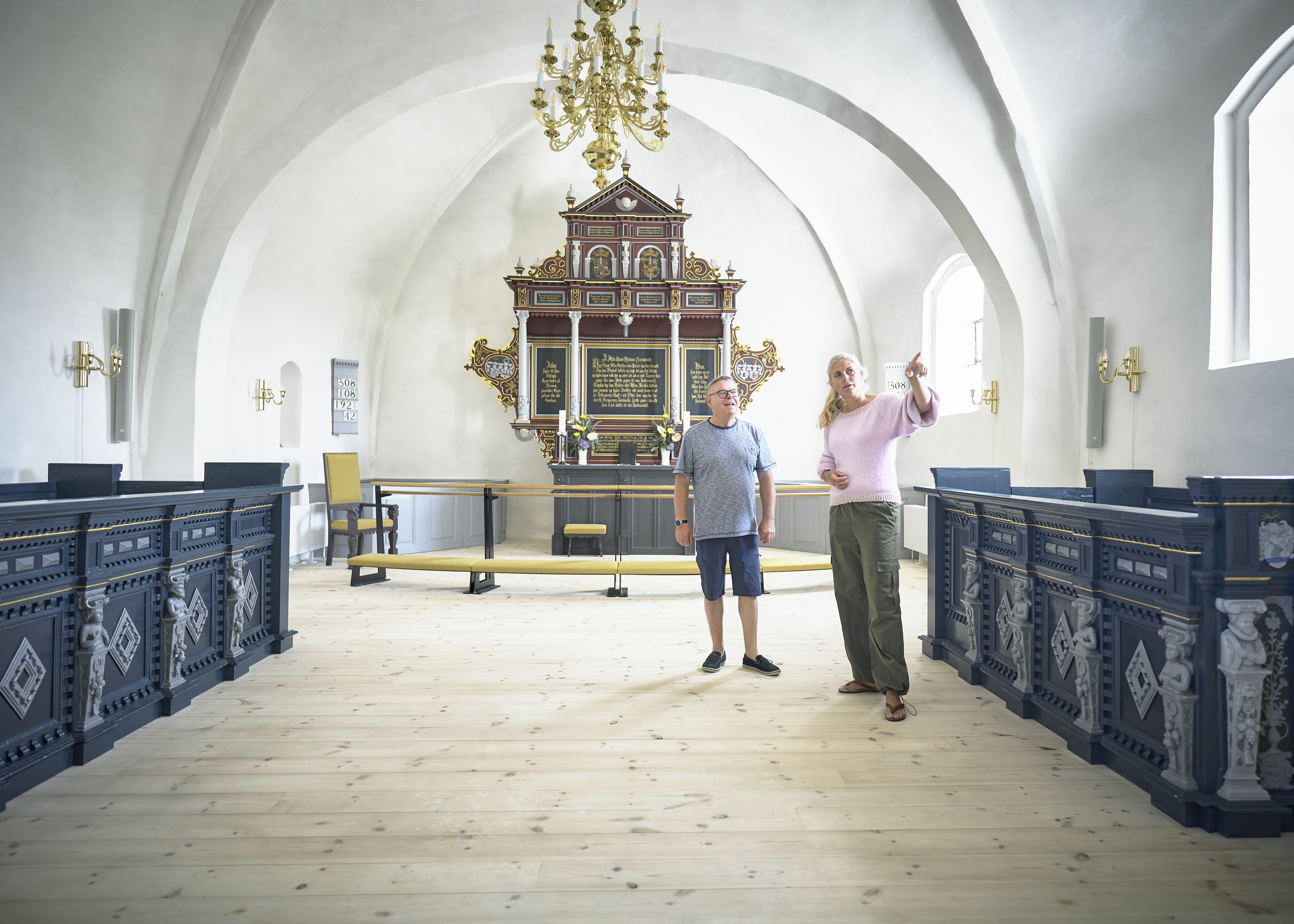 For at kunne flytte døbefonten og give den mere plads var det nødvendigt, at nogle bænkerækker blev taget ud, mens de øverste smukke herskabsbænke blev vendt 90 grader, hvorved man nu faktisk også kan se, hvor smukt udskåret, de egentligt er. På den måde er koret så at sige blevet et rum i rummet, hvor vi kan holde små gudstjenester og andagter, hvor nærheden og fællesskabet understreges af, at vi er rykket sammen.