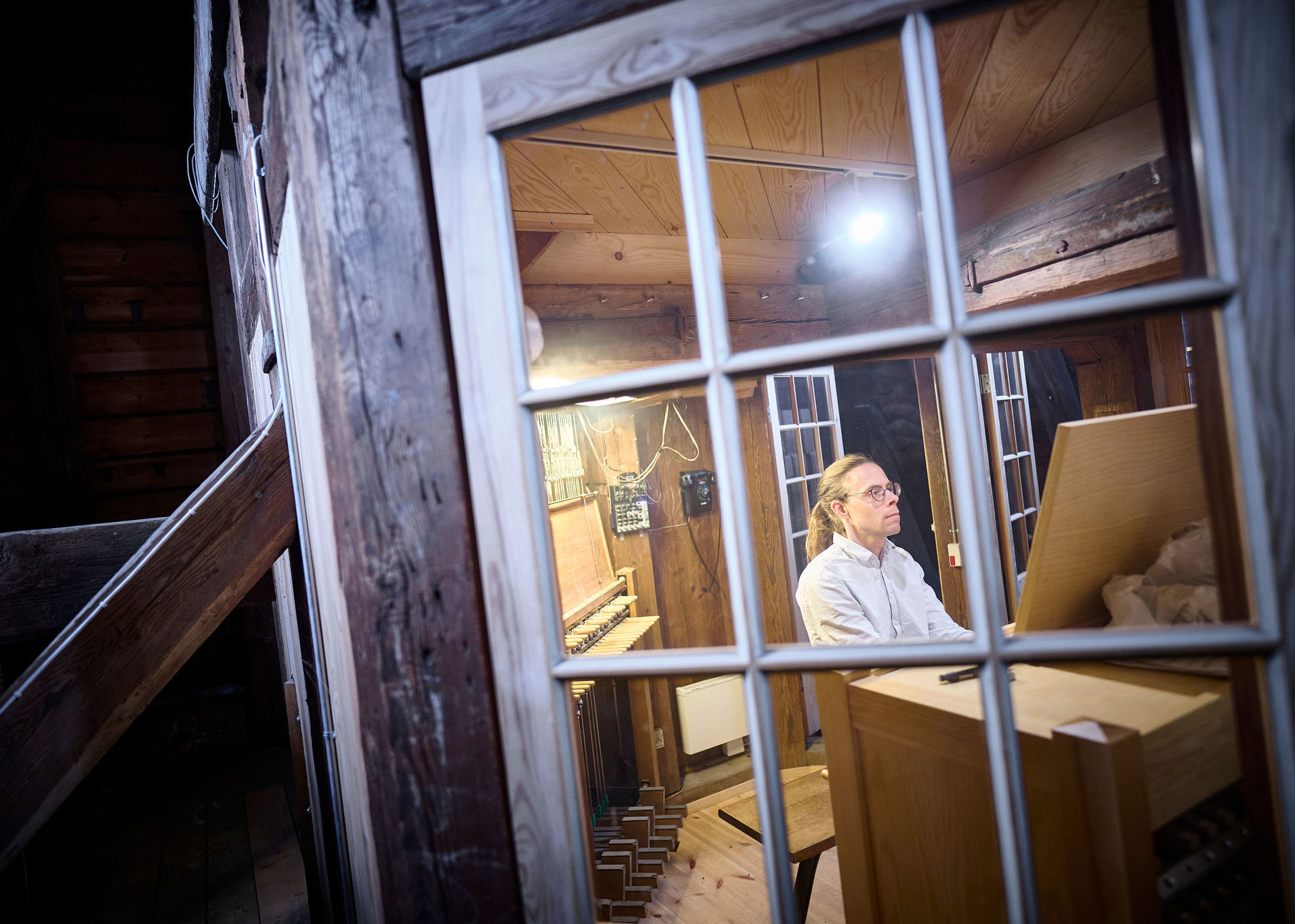 Ved et klokkespil benytter man et såkaldt stokklaviatur. Det minder om klaviaturet på et klaver, men det er meget større, og i stedet for at spille med fingrene spiller man med sine knyttede hænder og fødderne. Jeg har både et klaviatur, som er forbundet til klokkerne i Domkirkens tårn, og et øve-klaviatur, så jeg kan øve mig uden at involvere hele midtbyen.
