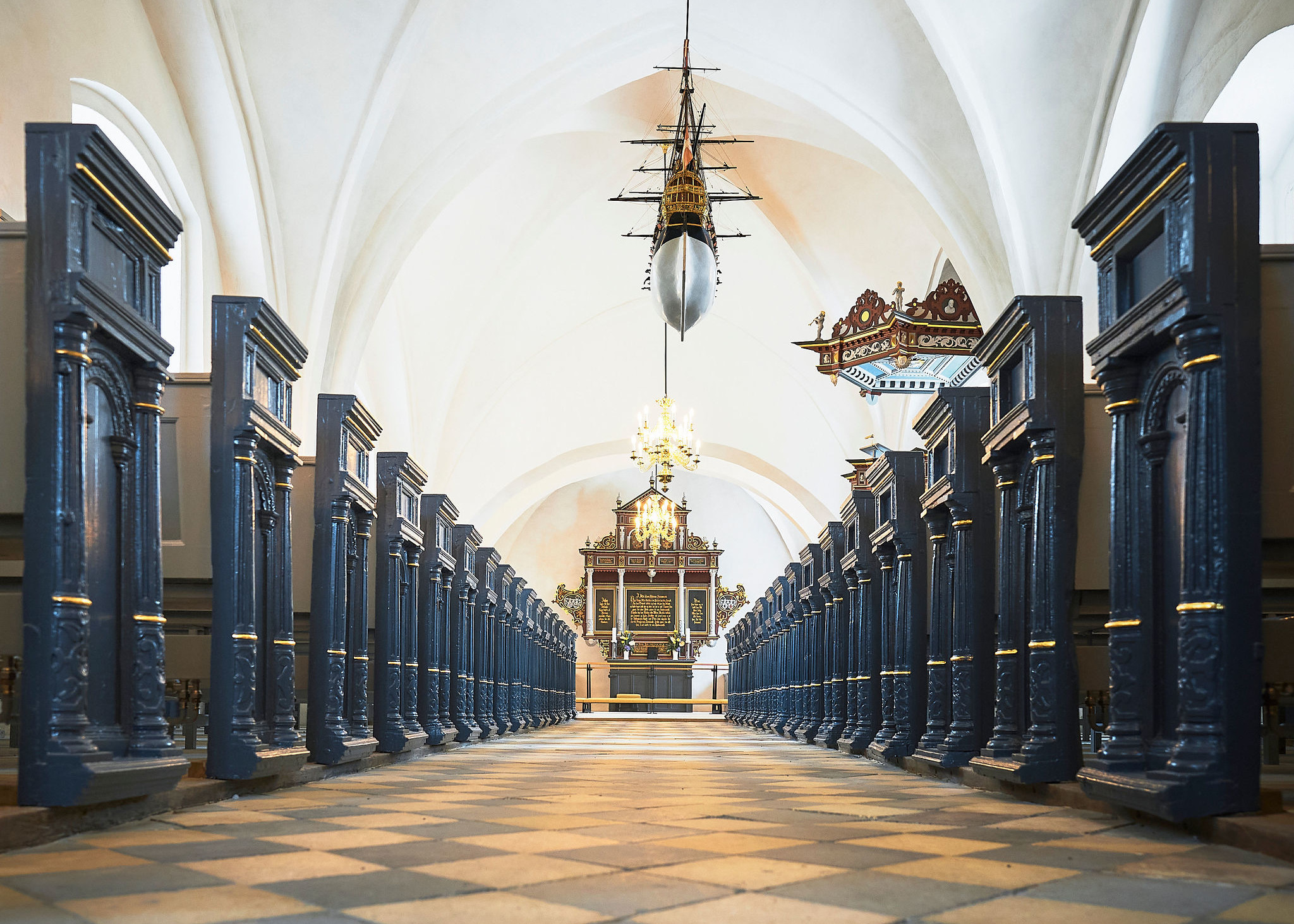 ”Alterbordet i en mørk farve fortæller underbevidstheden, at alteret rent faktisk står på noget, der står fast. De mørke bænke får os til at føle, at vi sidder på noget, der holder,” siger Anne Marie Steensberg