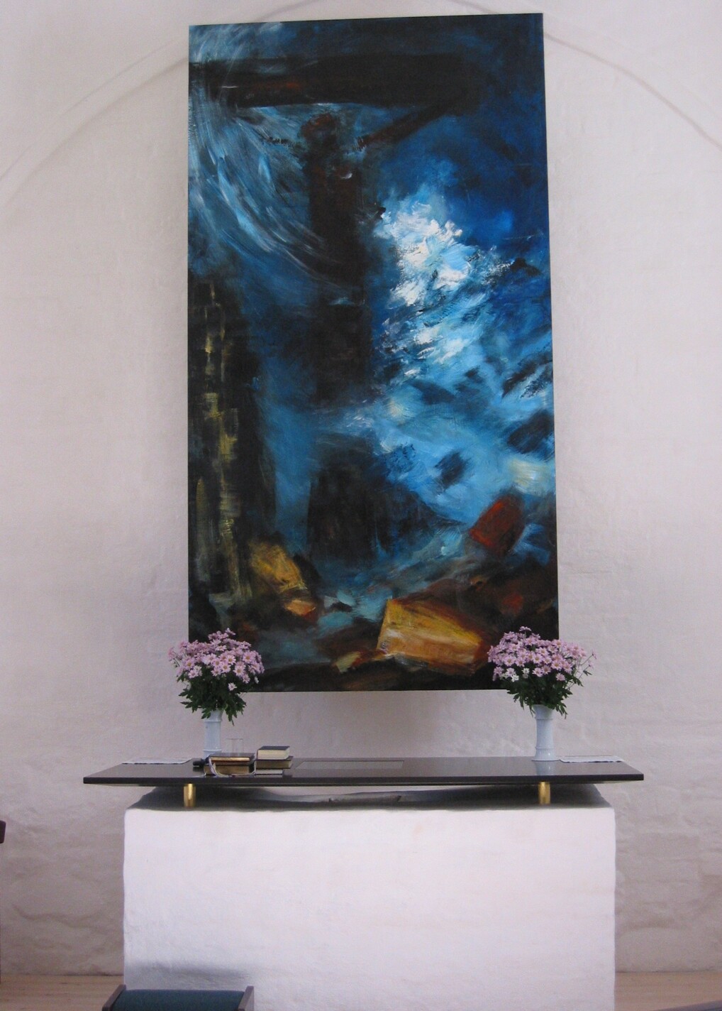 Kunstneren har kaldt alterbillede ”Blå korsfæstelse”.