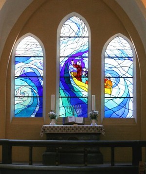 Motivet er ”Stormen på søen” (Matt 8,23-27), hvor Jesus beroliger sine disciple ved at kalde det oprørte vand til hvile. Dette tema taler direkte til den erfaring af havets farlighed, som den lokale fiskerbefolkning har levet med.