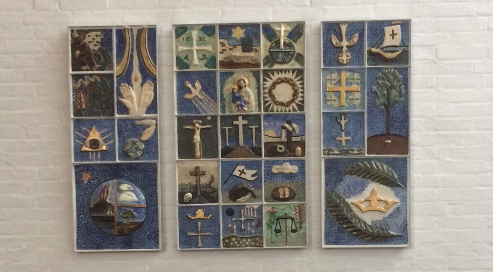 På kirkens nordvæg finder man et trefløjet relief, et såkaldt triptykon. Det blev købt i forbindelse med kirkens 25 års jubilæum i 2008.