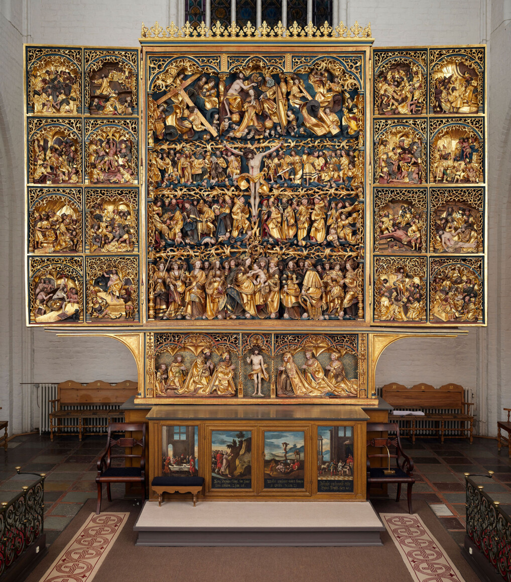 Altertavlen i Odense Domkirke. Læs om altertavlen her